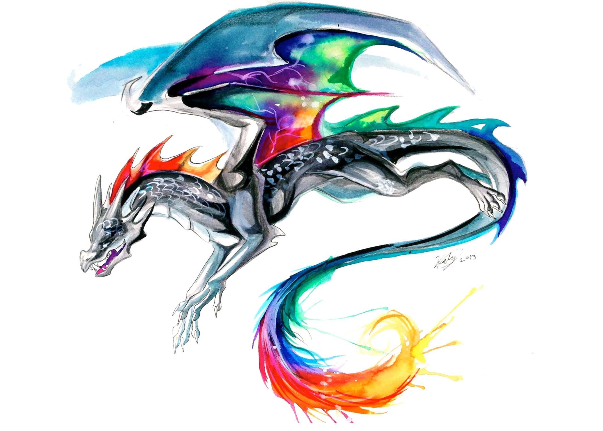 Дракон рисунок красками