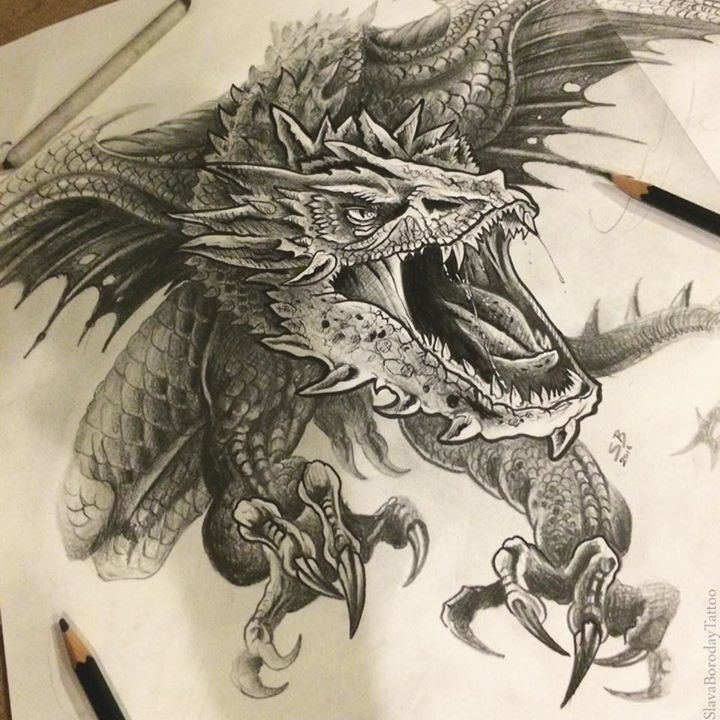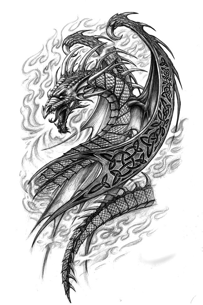 ![Дракон тату эскиз]()