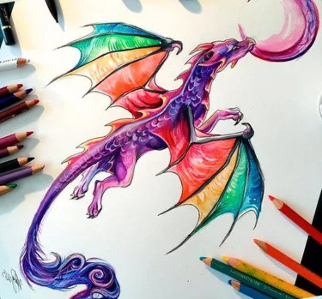 ![Дракон цветными карандашами]()