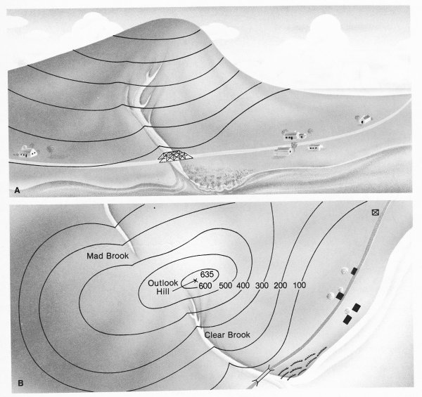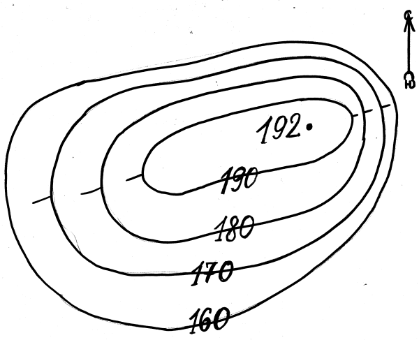 ![Горизонтали на топографической карте холм склон Северо-Запад]()