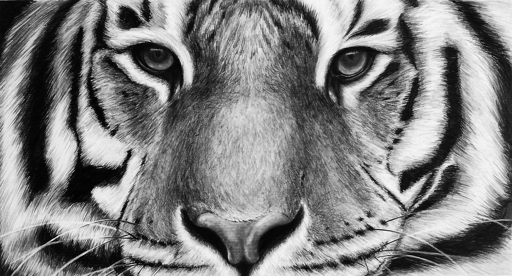 ![Морда тигра рисунок карандашом]()