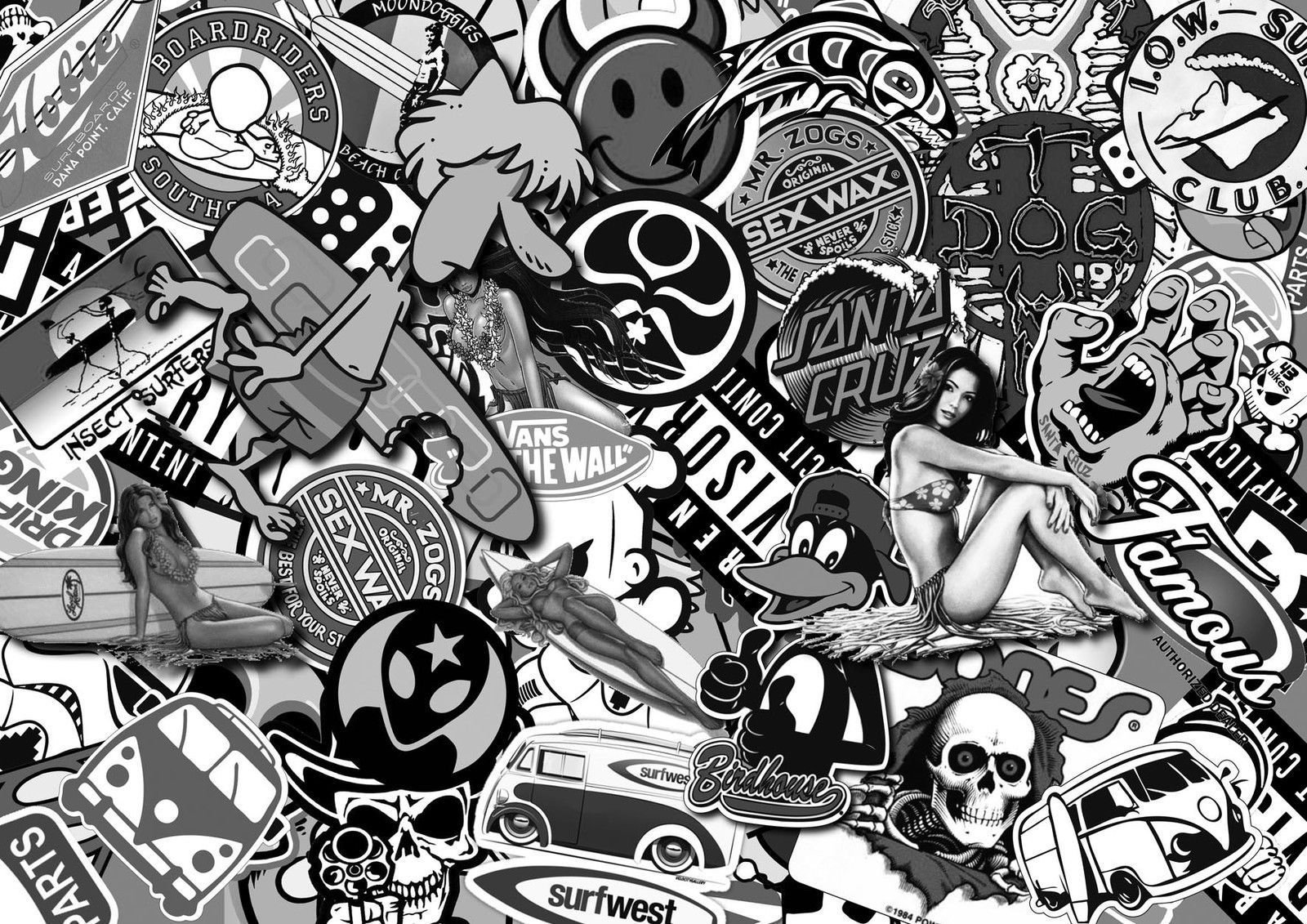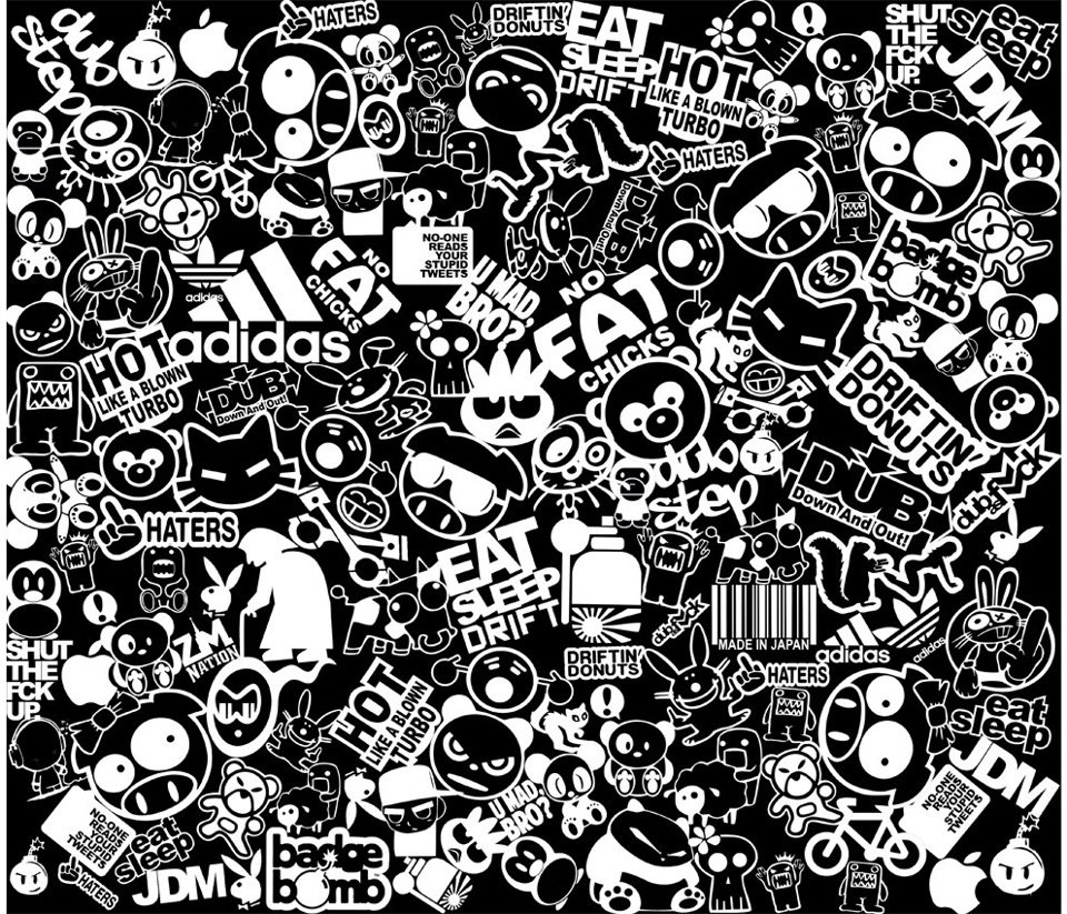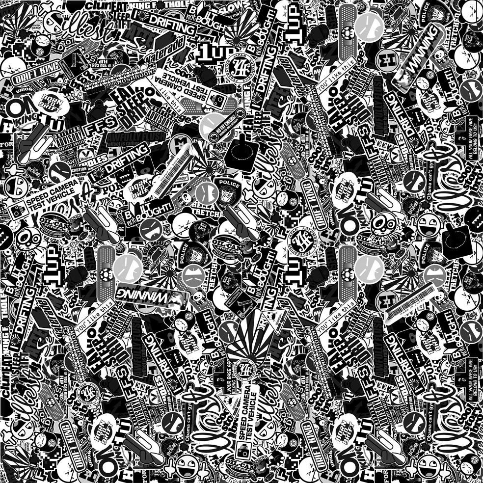 ![Наклейки стикербомбинг черно белая]()