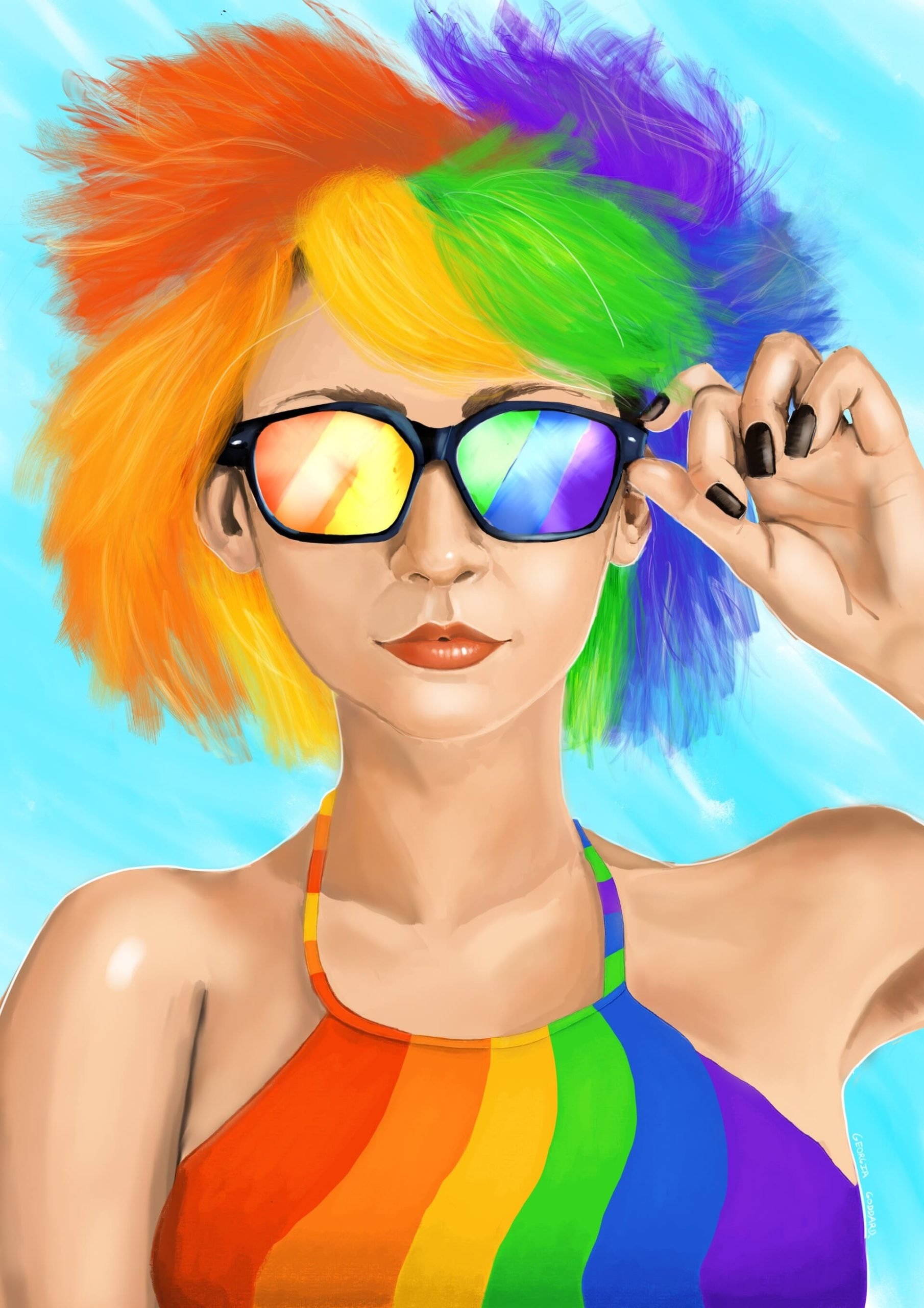 Девушка с радужными волосами