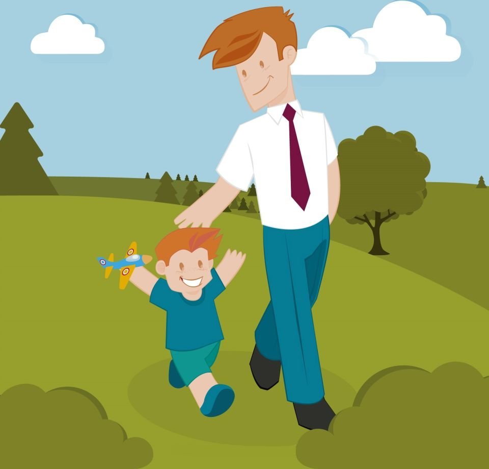 Мужчина обнимает ребенка мультяшные