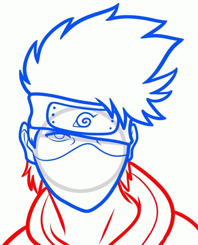 ![Рисунки Наруто поэтапно Какаси]()