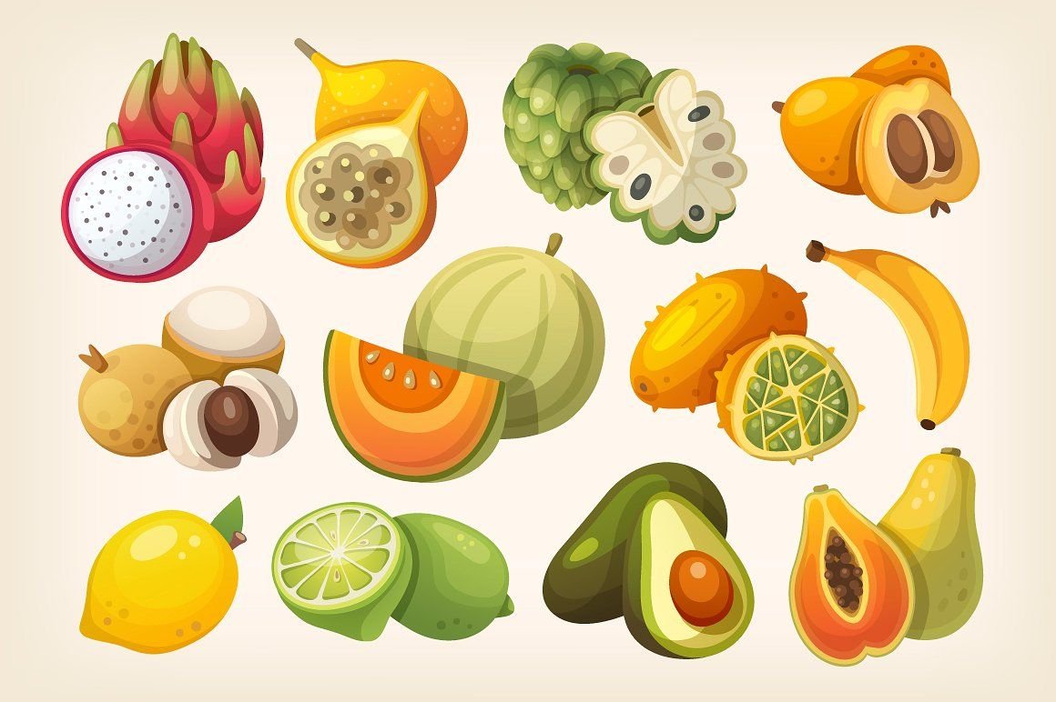Иллюстрации тропических фруктов
