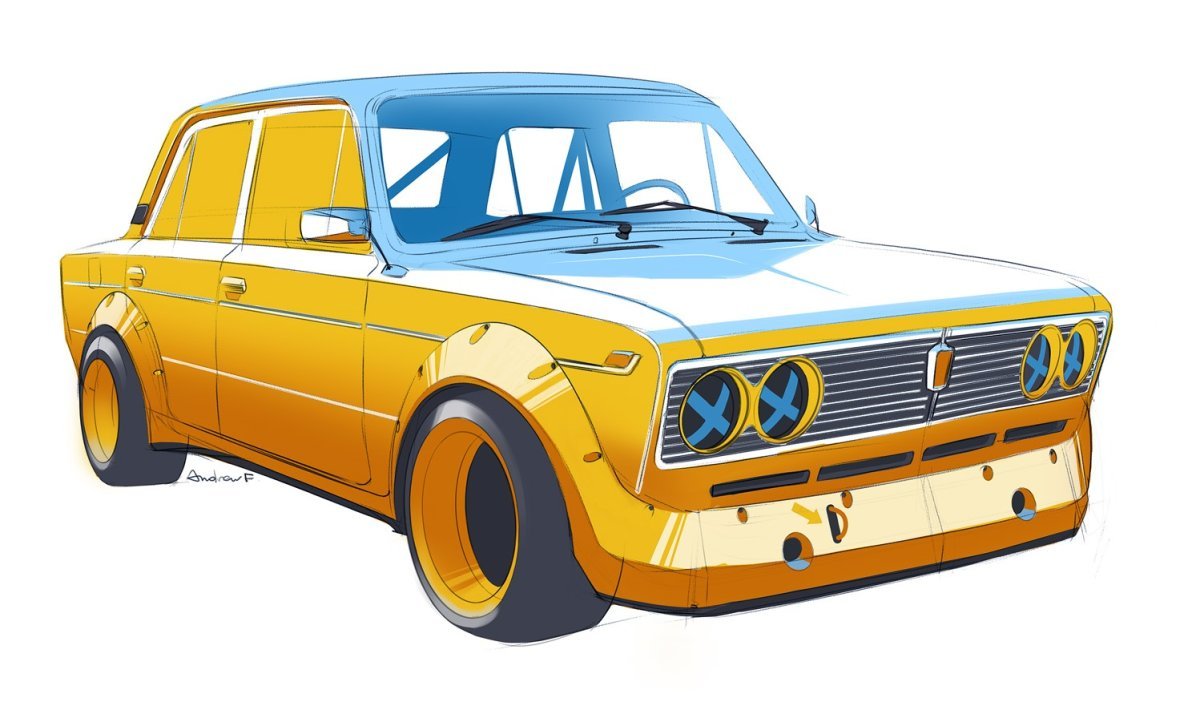 ![ВАЗ[ 2107 рисунок тюнингованный]()