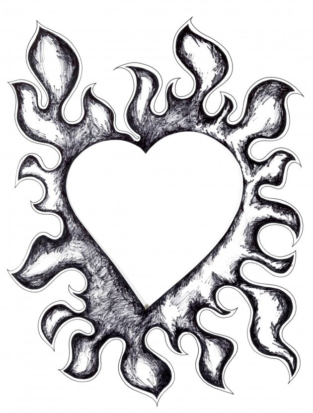 Огненное сердце карандашом