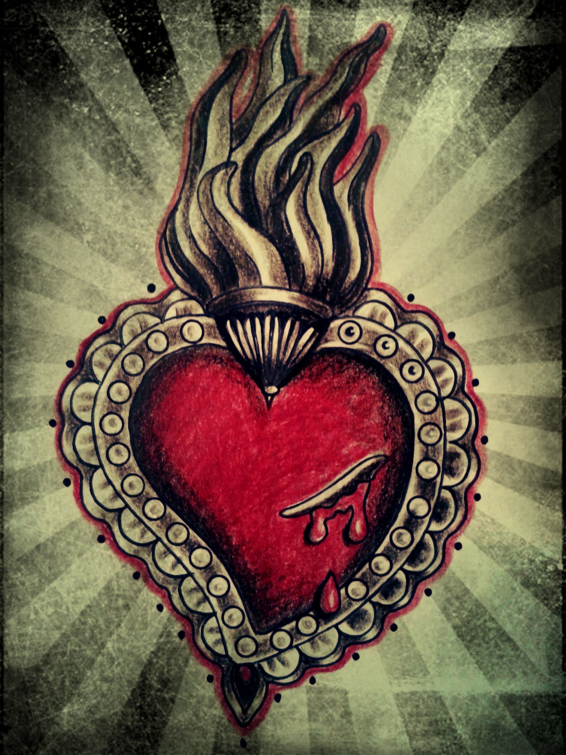 ![Огненное сердце карандашом]()