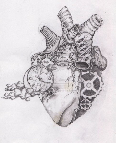 ![Механическое сердце тату]()