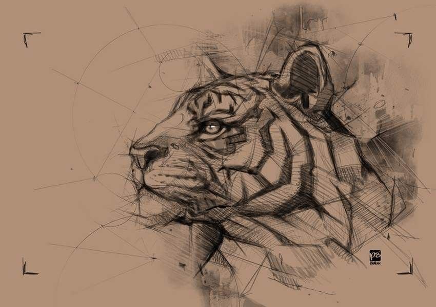 ![Тигр геометрия эскиз]()