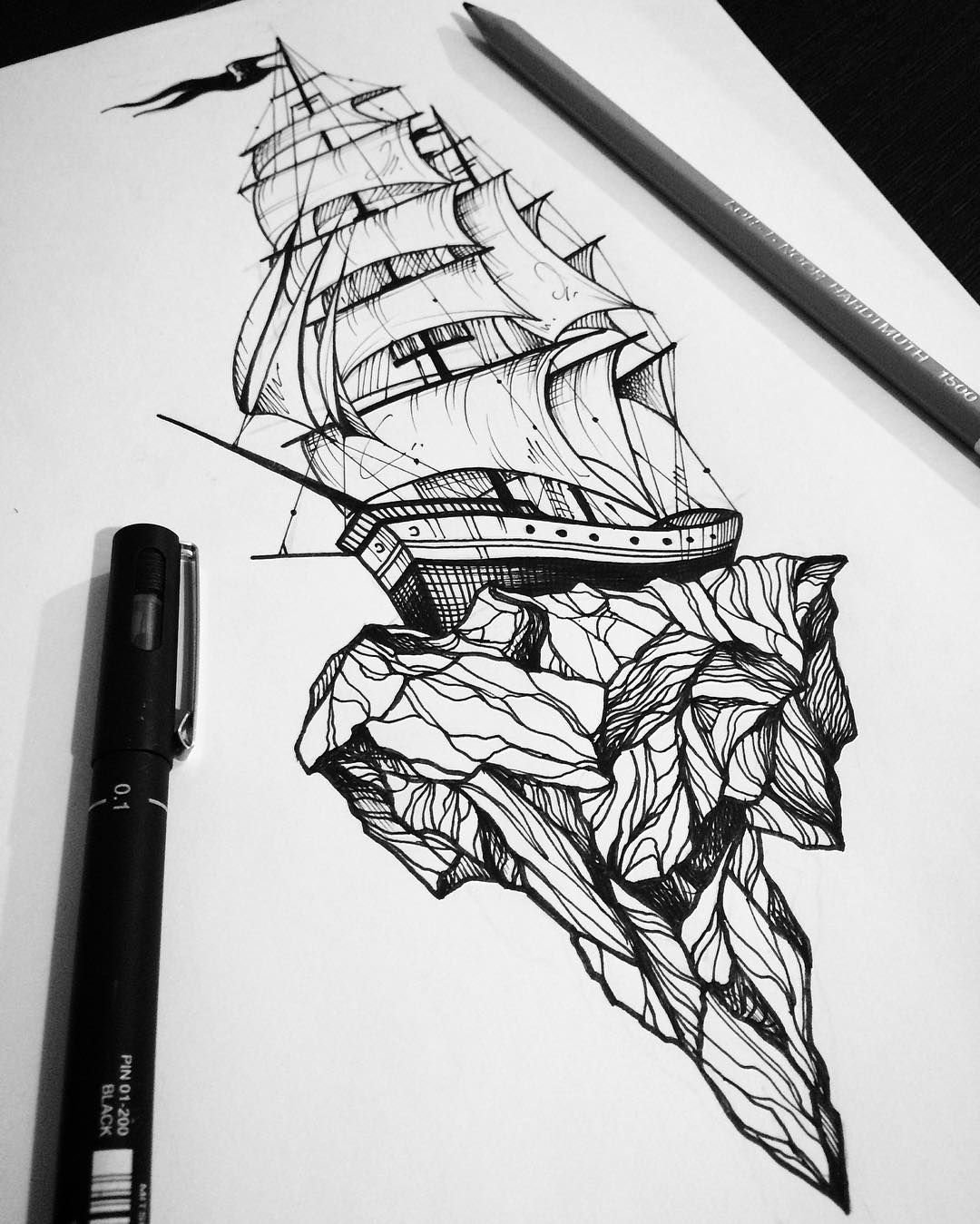 ![Тату лайнворк корабль]()