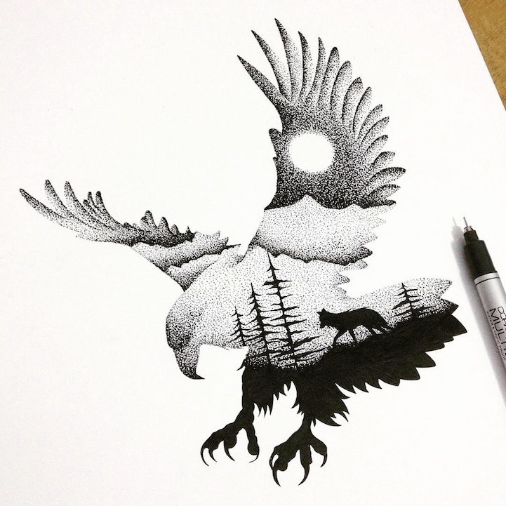 ![Птица в стиле дотворк]()
