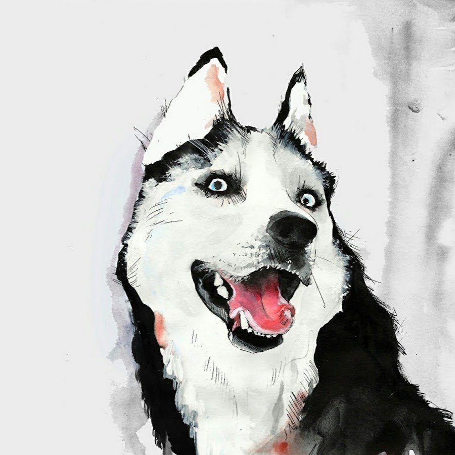![Хаски акварелью]()