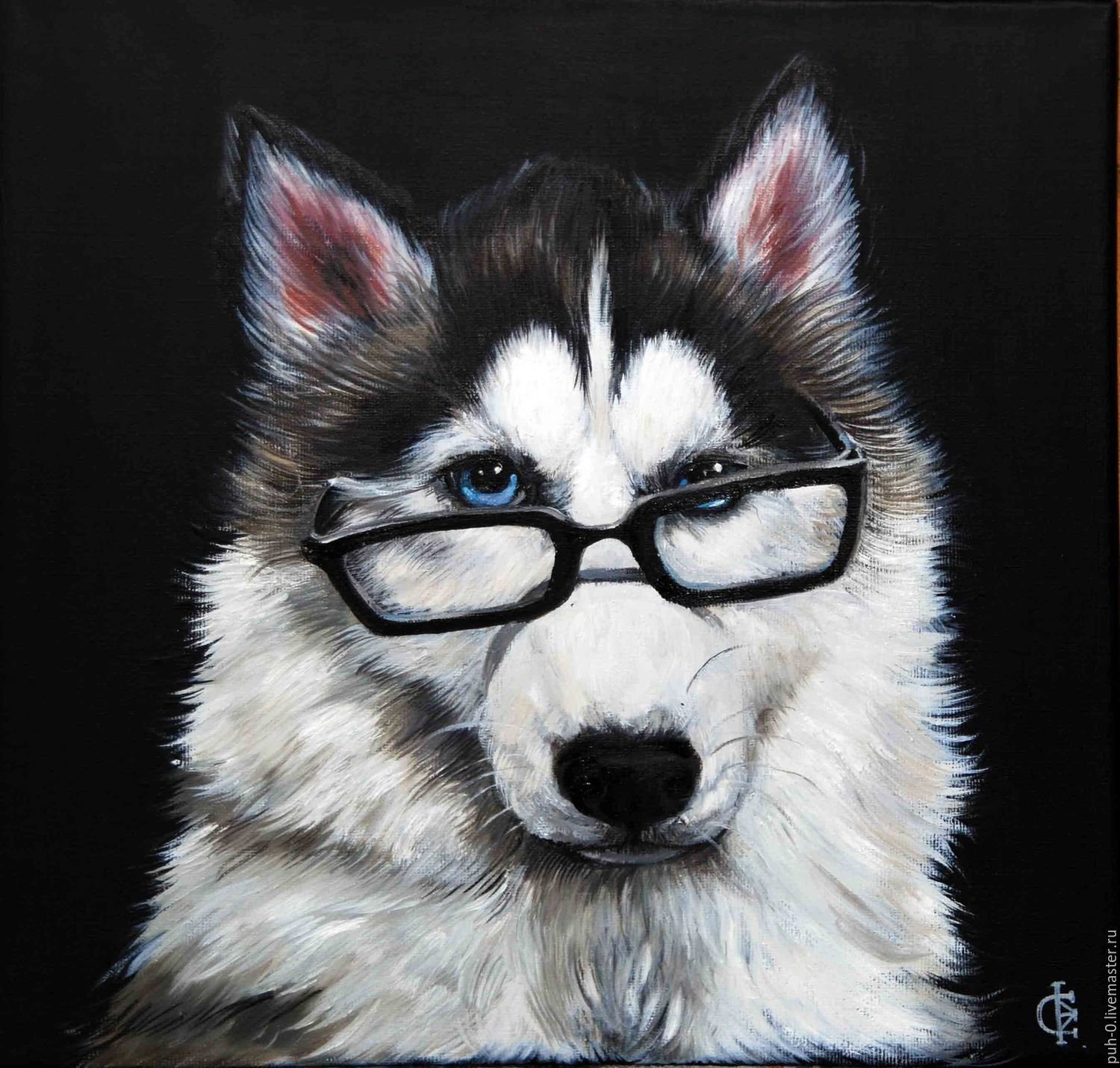 ![Собака хаски в очках]()
