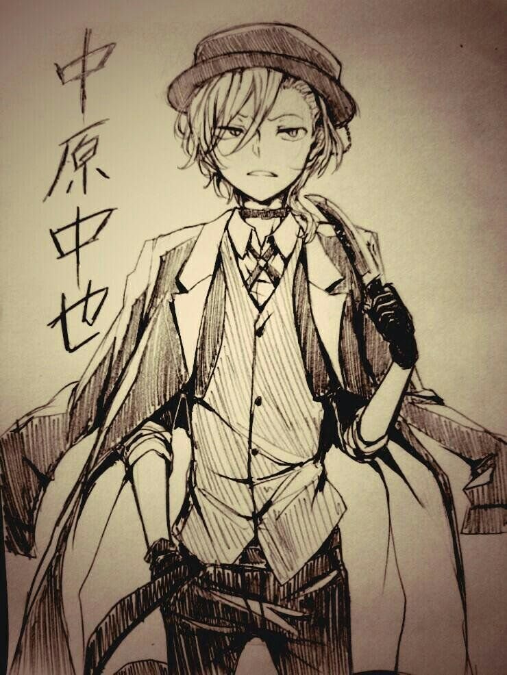 ![Чуя Накахара аниме скетч]()