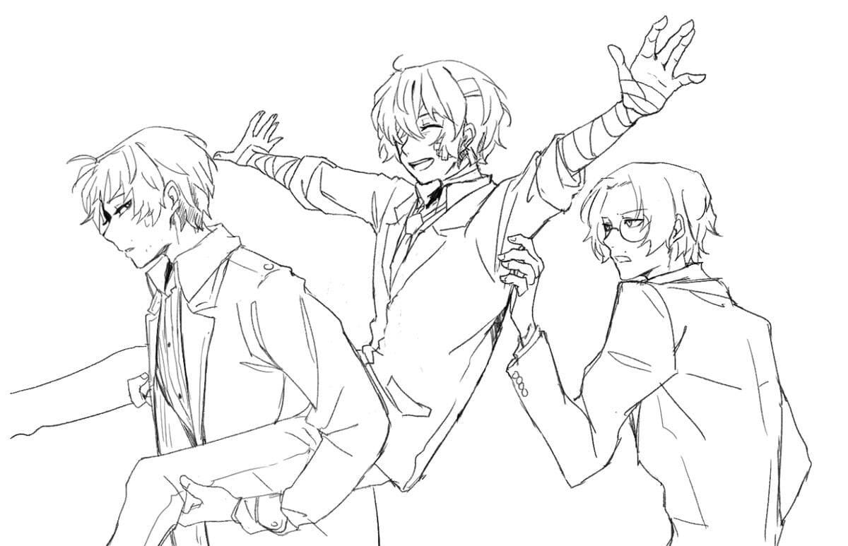 ![Скетч аниме бродячие псы]()