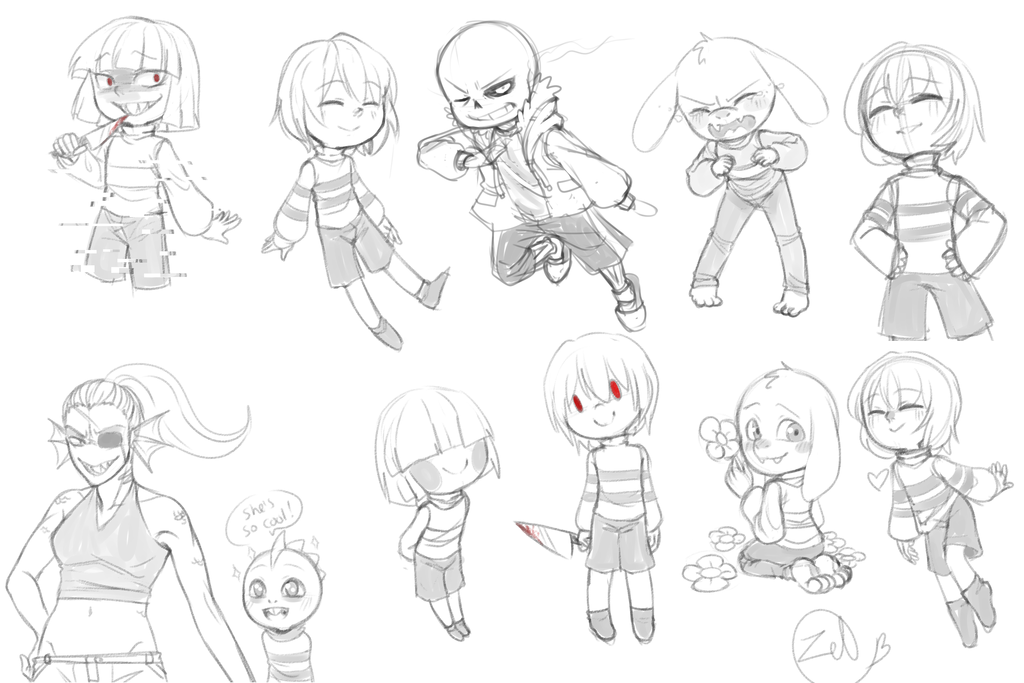 ![Зарисовки персонажей андертейл]()