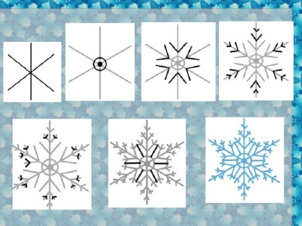 Этапы рисования снежинки