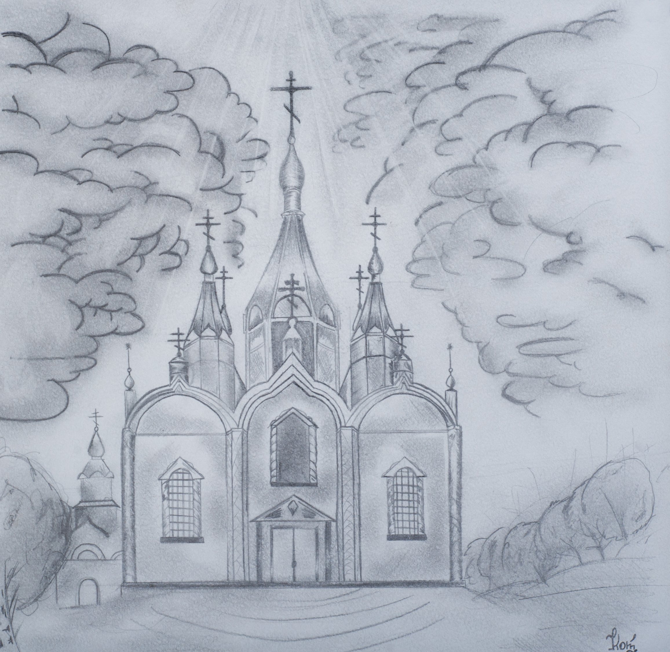![Церковь карандашом]()