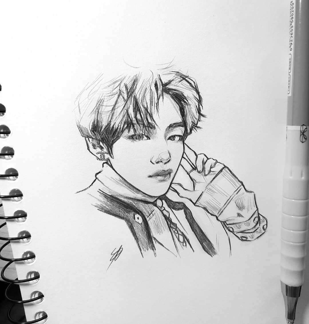 ![BTS карандашом Тэхен]()