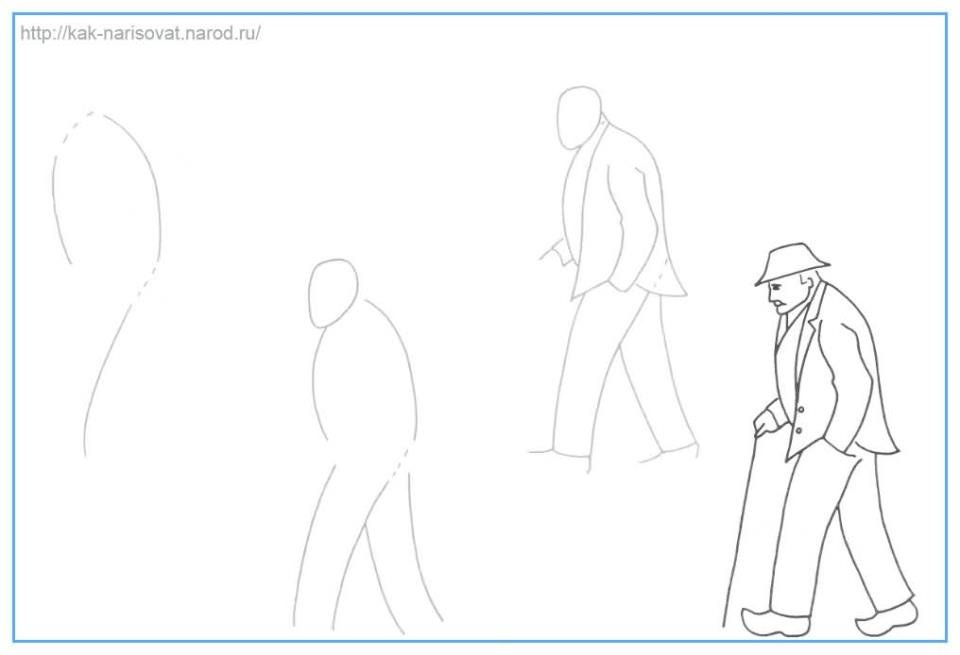 Поэтапное рисование дедушки