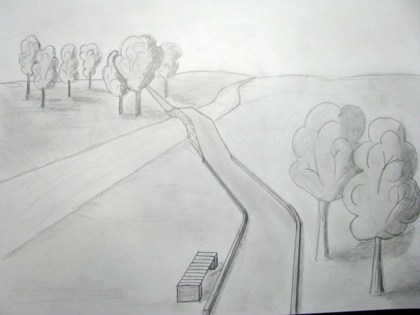 ![Пейзаж в перспективе карандашом]()