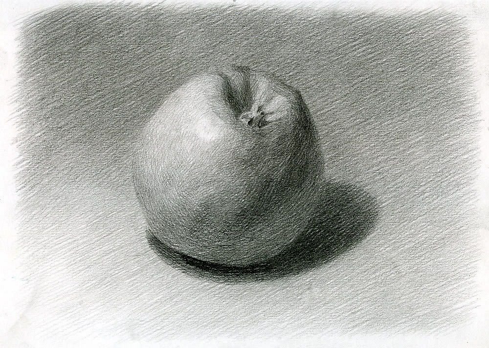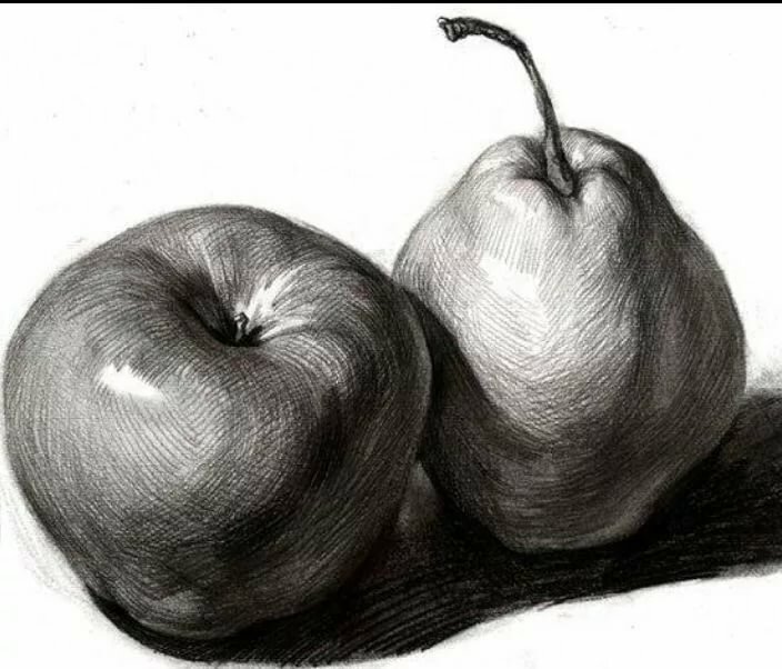 ![Яблоко штриховка карандашом]()
