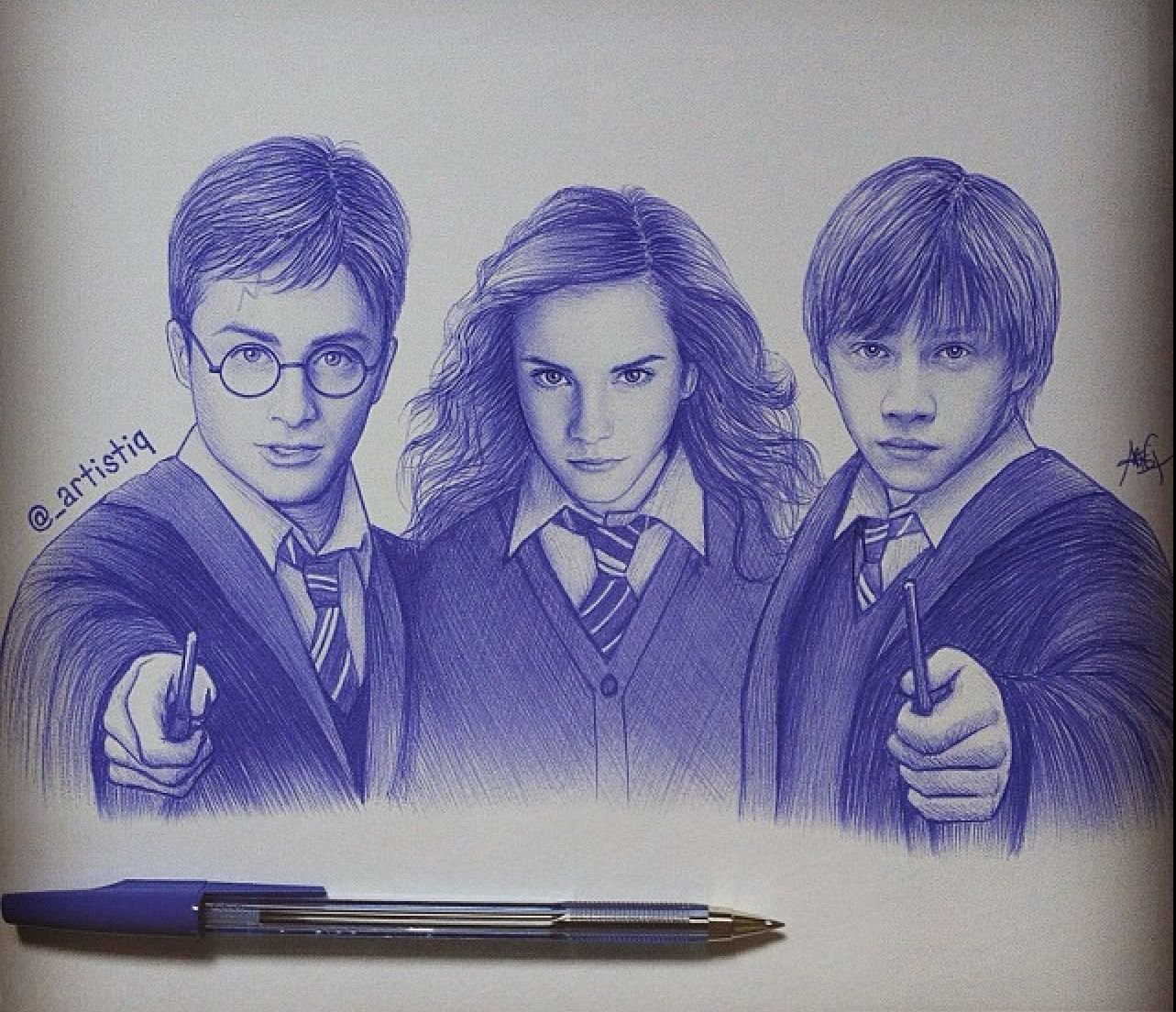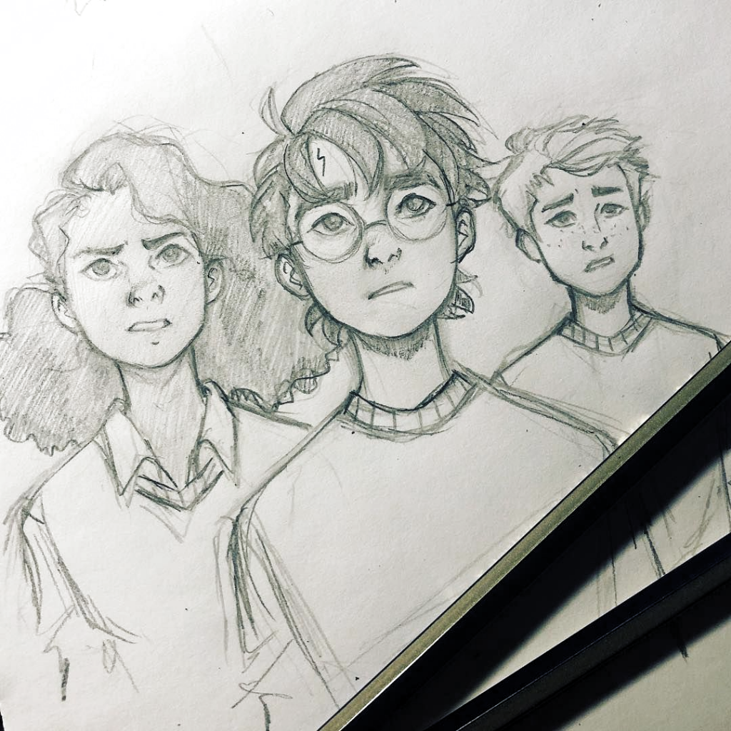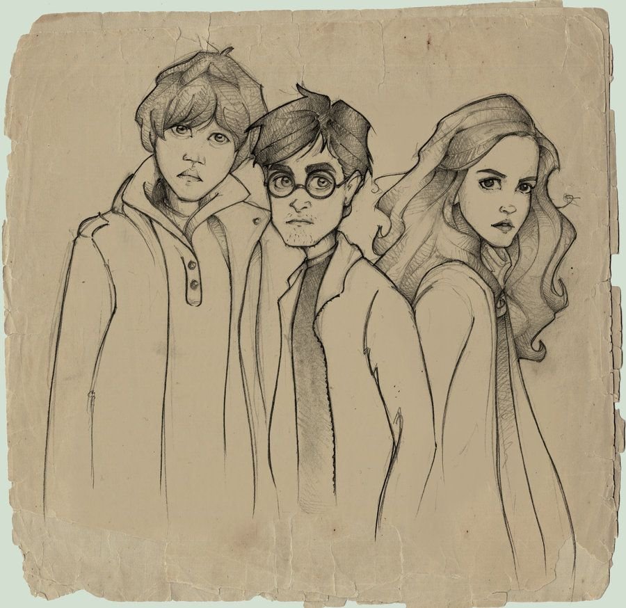 ![Срисовки Гарри Поттера Рона и Гермионы]()