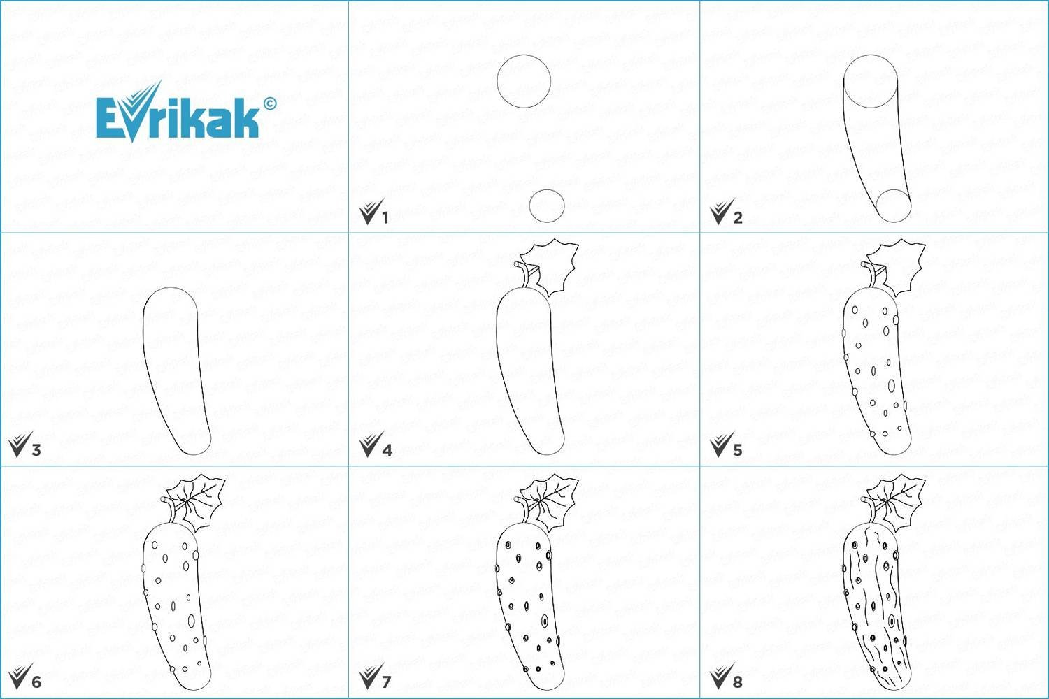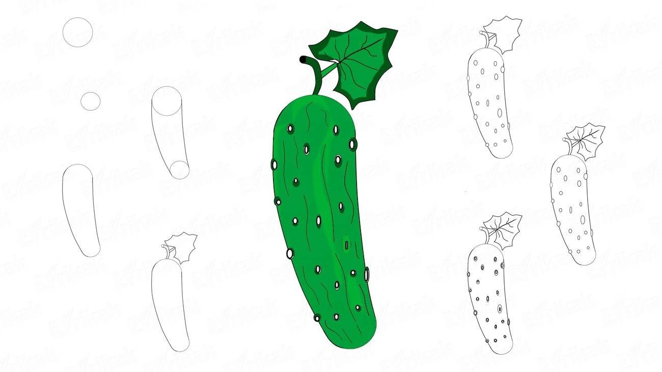 Поэтапность рисования огурца