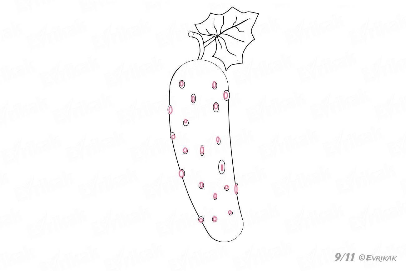 ![Поэтапность рисования огурца]()