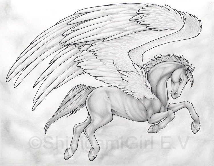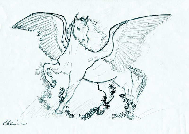 Лошадь с крыльями карандашом