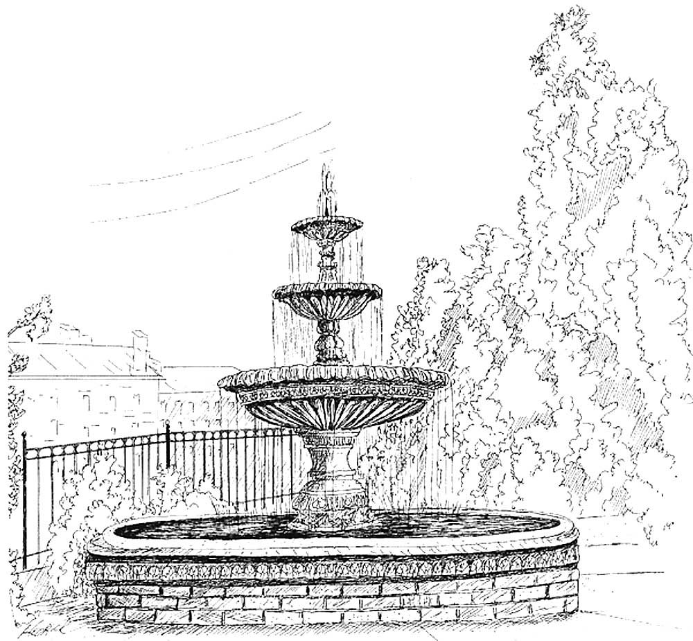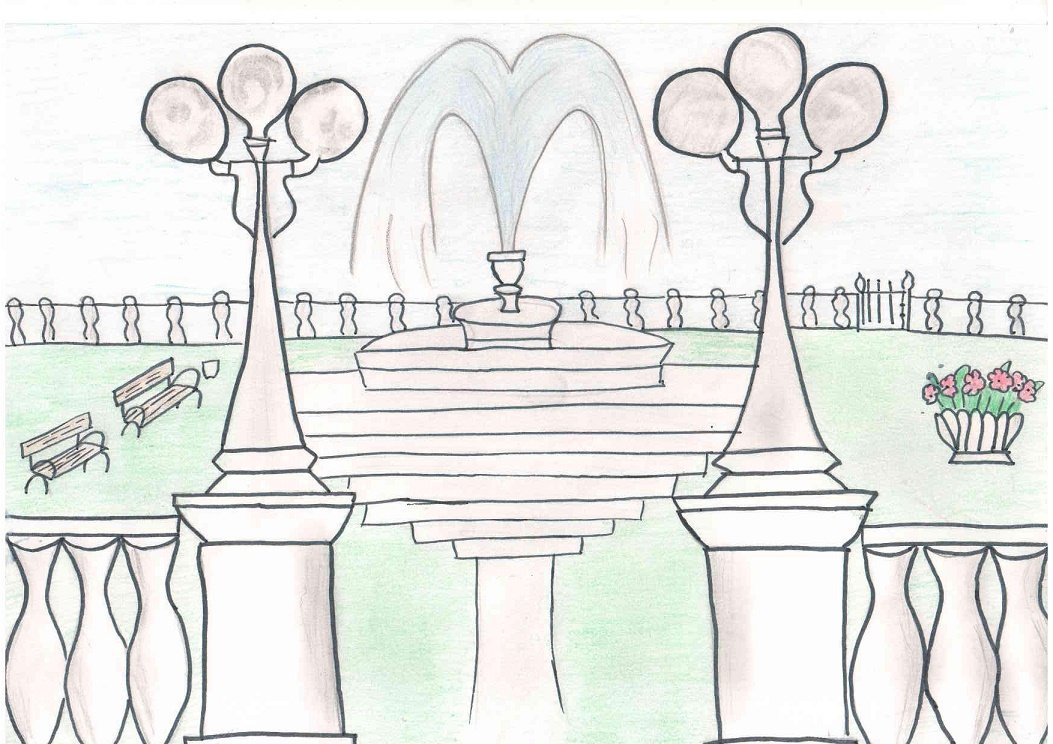 ![Сад с фонтаном рисунок]()