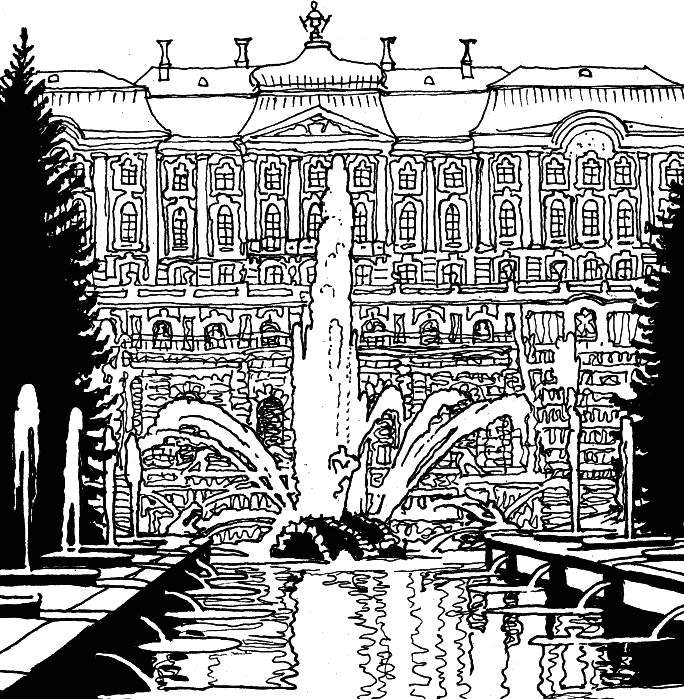![Раскраски Санкт-Петербург Петергофский дворец]()