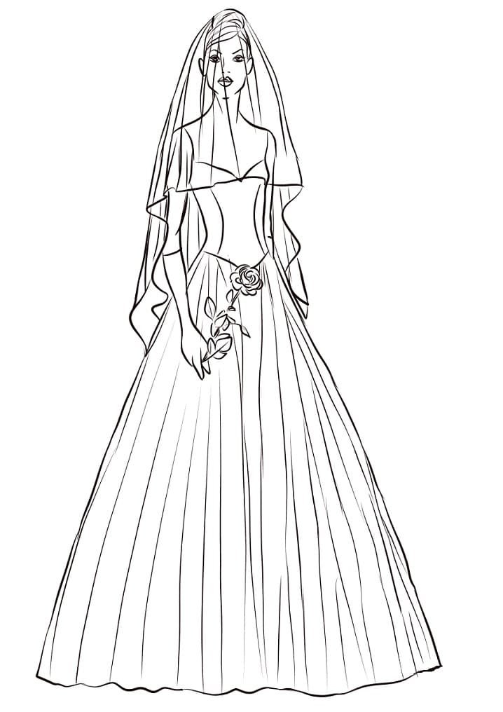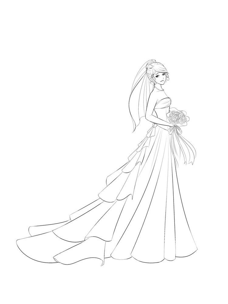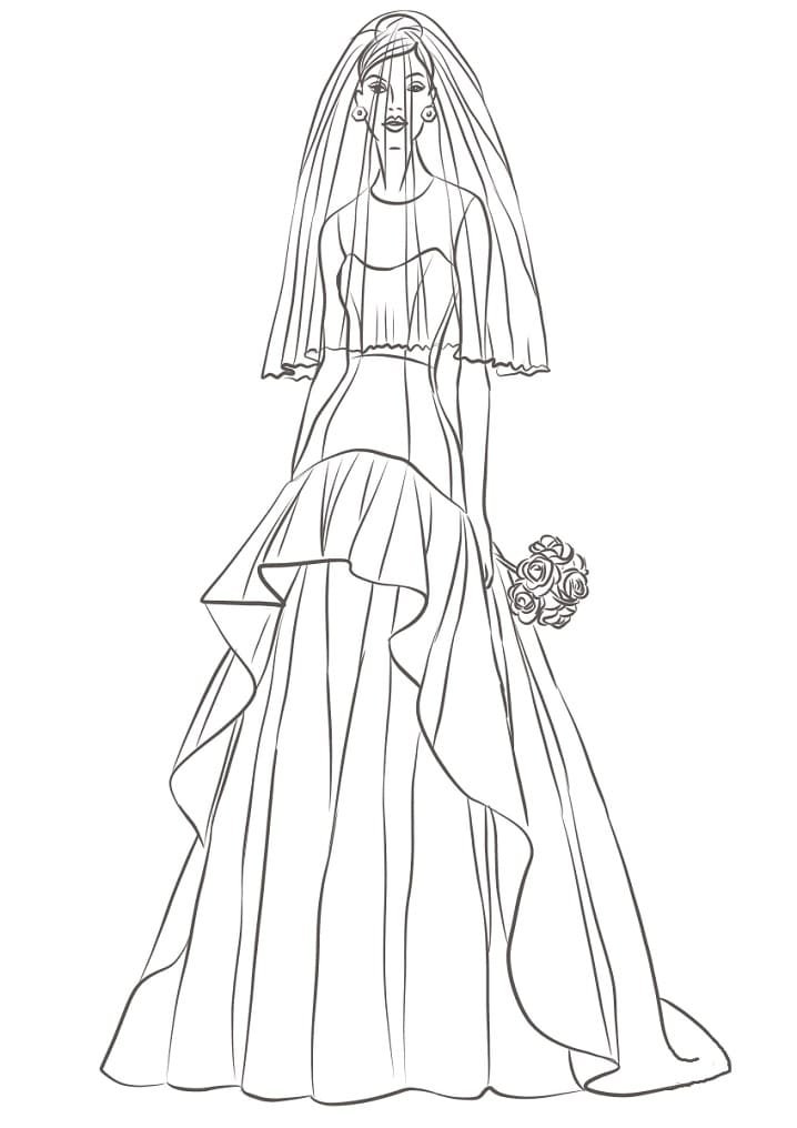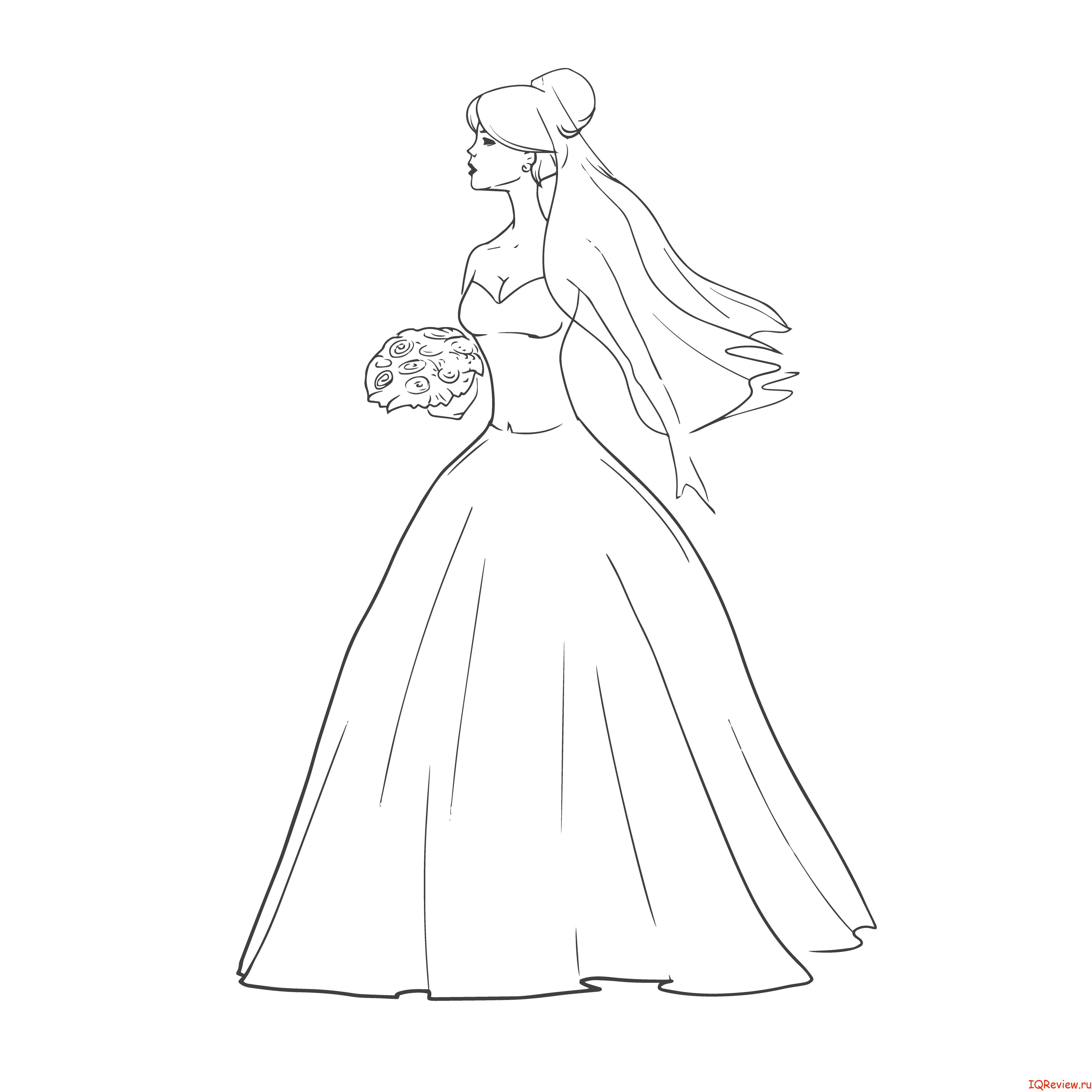 Девушка в свадебном платье раскраска
