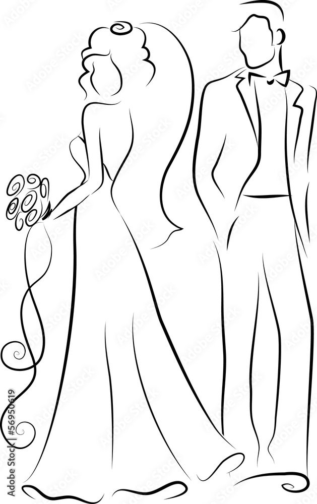 Контурный силуэт жениха и невесты