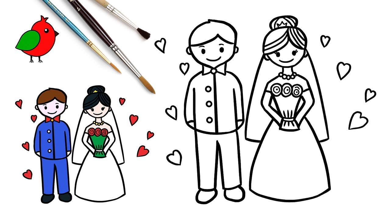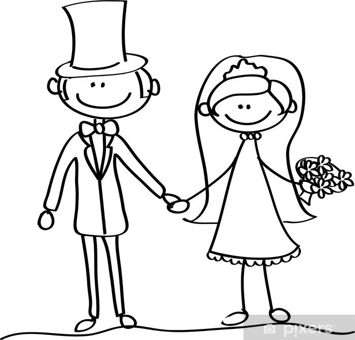 Жених и невеста нарисованные