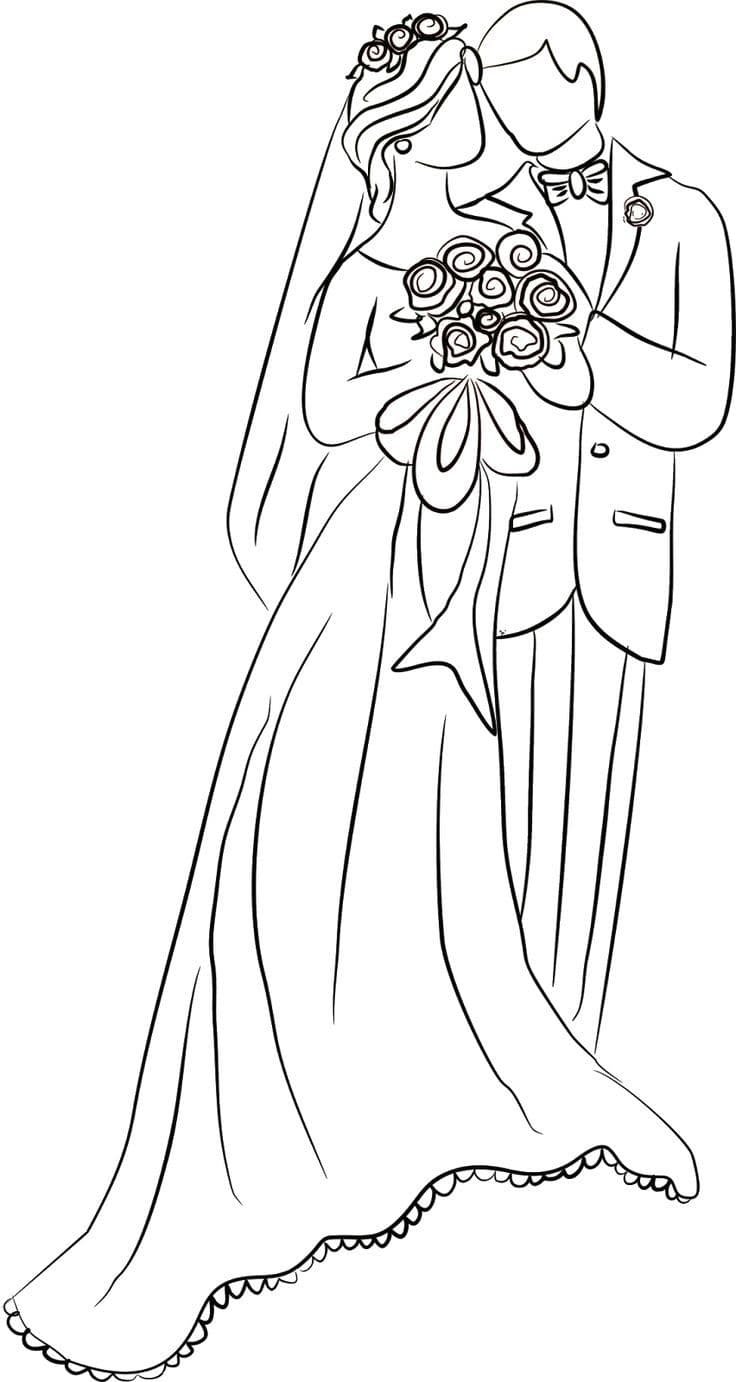 Раскраска жених и невеста свадьба
