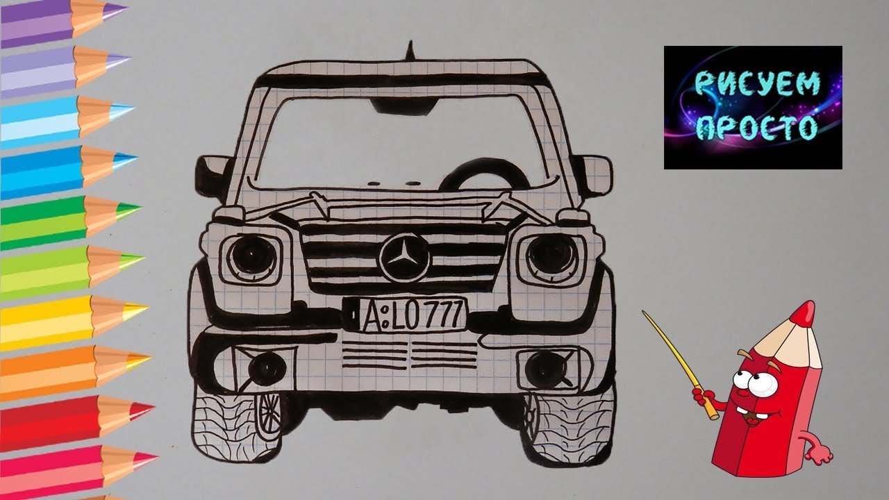 ![Джип Мерседес вид спереди рисунок карандашом]()