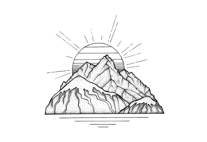 ![Горы рисунок черно белый]()