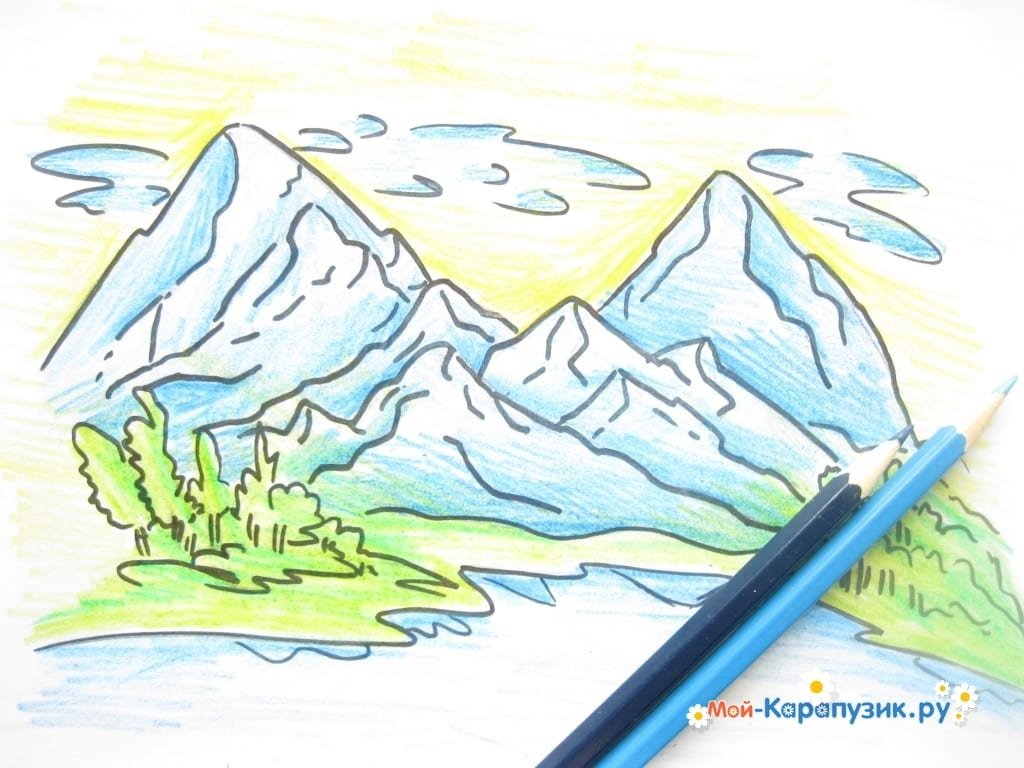 Горы карандашом для детей