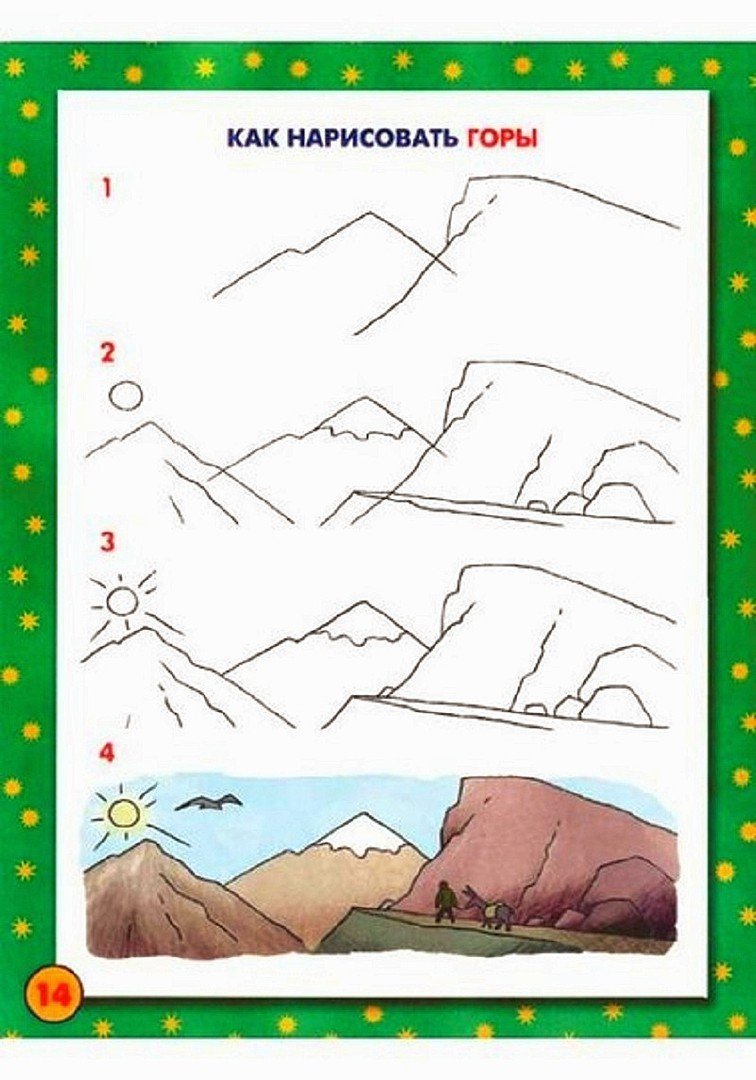 Горы поэтапное рисование