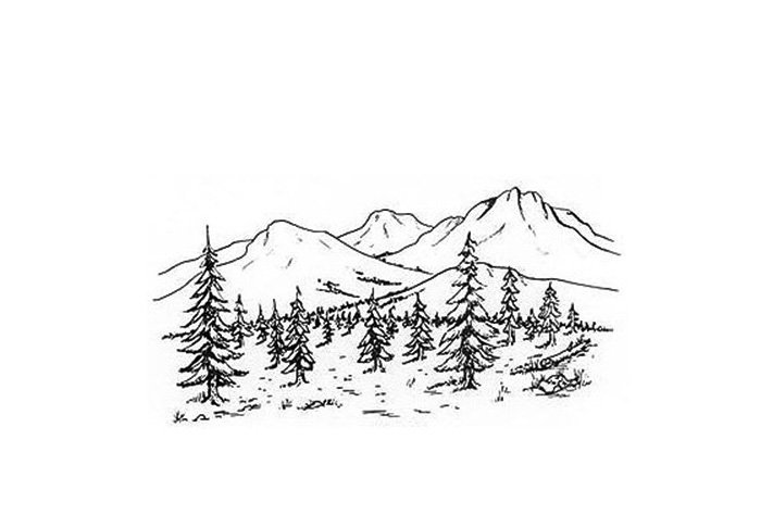 Горы рисунок черно белый