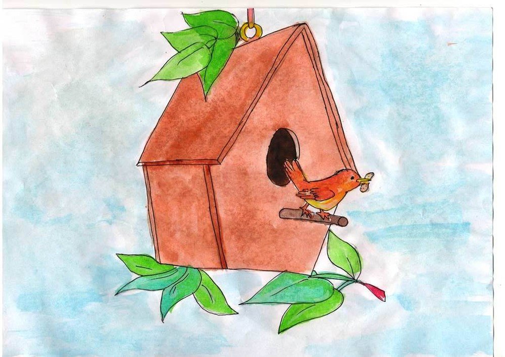 ![Рисование с детьми скворечник]()
