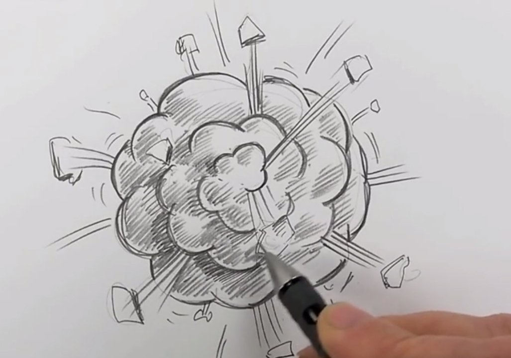 ![Взрыв нарисовать карандашом]()