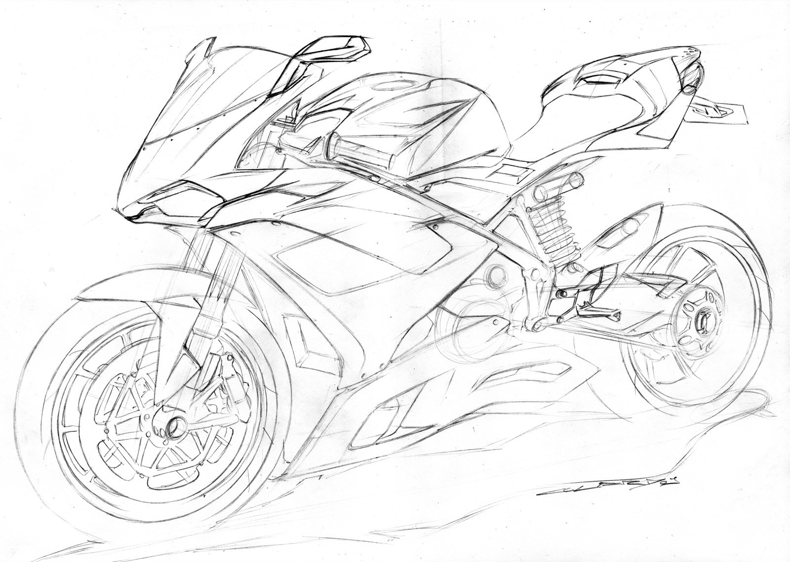 Мотоцикл карандашом для срисовки