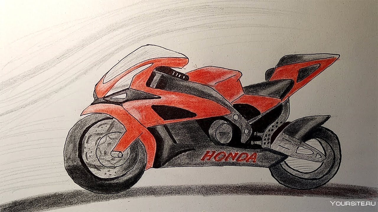 ![Рисунок мотоцикла карандашом для начинающих]()