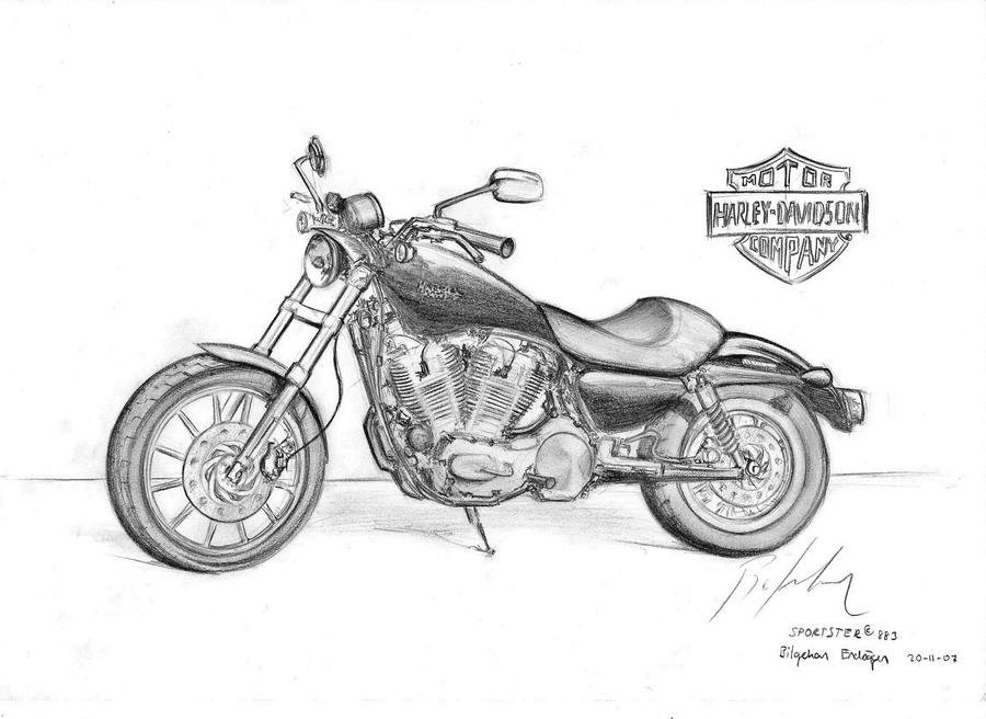 Мотоцикл рисунок карандашом