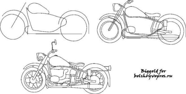 Пошаговый рисунок мотоцикла