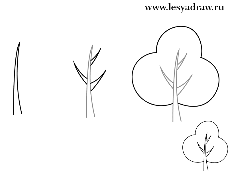 Поэтапное рисование дерева для детей